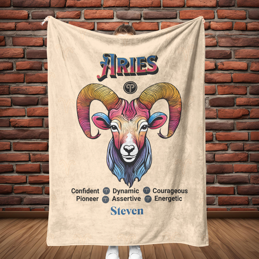 Aries Minimalist Personalized Fleece/Sherpa Blanket