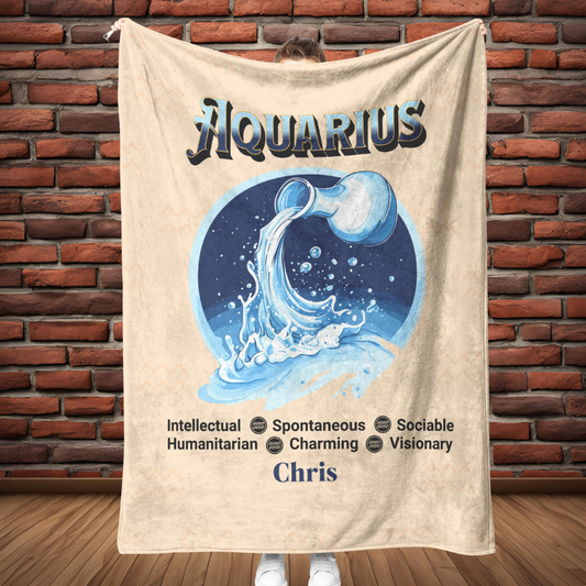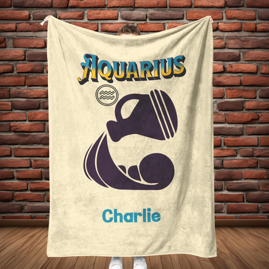 Aquarius Minimalist Personalized Fleece/Sherpa Blanket