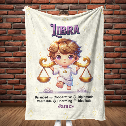 Libra Boy Personalized Fleece/Sherpa Blanket