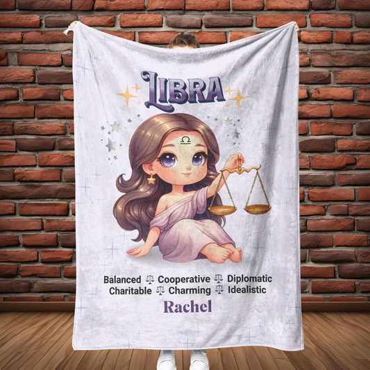 Libra Girl Personalized Fleece/Sherpa Blanket
